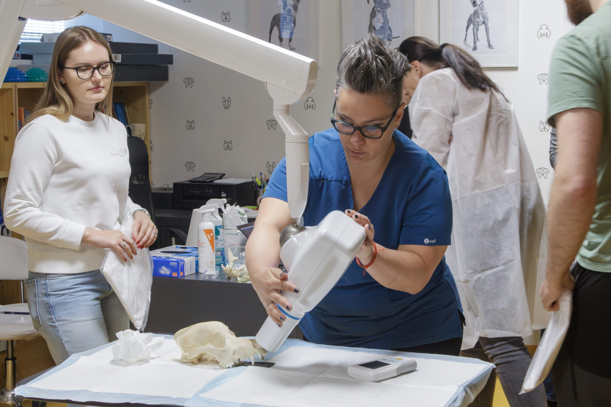 Polovica apríla patrila odbornému workshopu v rámci nášho vzdelávacieho programu O KROK NAPRED S PHARMACOPOLOU na Veterinárnej klinike Žilina. Tentokrát sme sa zamerali na techniku prevedenia intraorálneho RTG „full mouth“ u psov. Celý workshop viedla skúsená lektorka MVDr. Janka Blahušiaková a pod jej vedením mali účastníci možnosť prehĺbiť svoje teoretické vedomosti z interpretácie IO RTG snímkov, ako aj praktické zručnosti, v tejto špecializovanej oblasti veterinárnej diagnostiky.