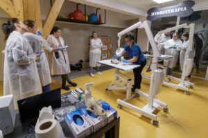 Hlavným prínosom workshopu boli praktické ukážky či skúšania, zamerané na techniky a správne polohovanie psieho pacienta. Účastníci si pod odborným dohľadom osvojili jednotlivé projekcie, pričom dôraz bol kladený na presnosť, reprodukovateľnosť snímok a minimalizáciu chýb pri snímkovaní. Interaktívny charakter workshopu umožnil účastníkom okamžite aplikovať získané poznatky a konzultovať konkrétne prípady.
